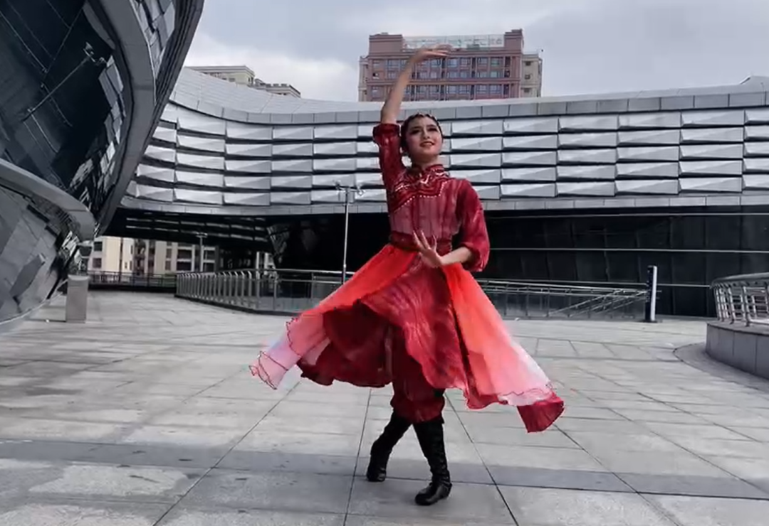 舞蹈专业的孙畅同学则带来了独舞《我的中国梦》。伴随着《我的祖国》的歌声,她身着艳丽蒙族服饰翩翩起舞,拥抱蓝天白云,呼唤梦想,祝福祖国伟大复兴之梦。
