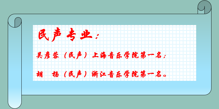 大家好,我是浙江音乐学院附属音乐学校高三年级民声专业的吴彦蓉,师从左靓老师,在校考期间取得了上海音乐学院民声专业第一的成绩。