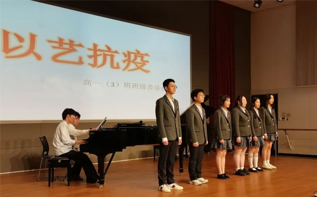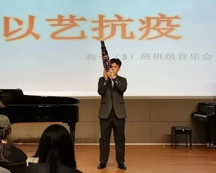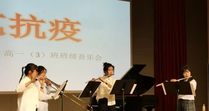 本场音乐会除了留校师生现场观看之外,还邀请了校领导老师以及家长通过钉钉视频直播观看。高一三班的同学们闪亮登台,轮番献演。
