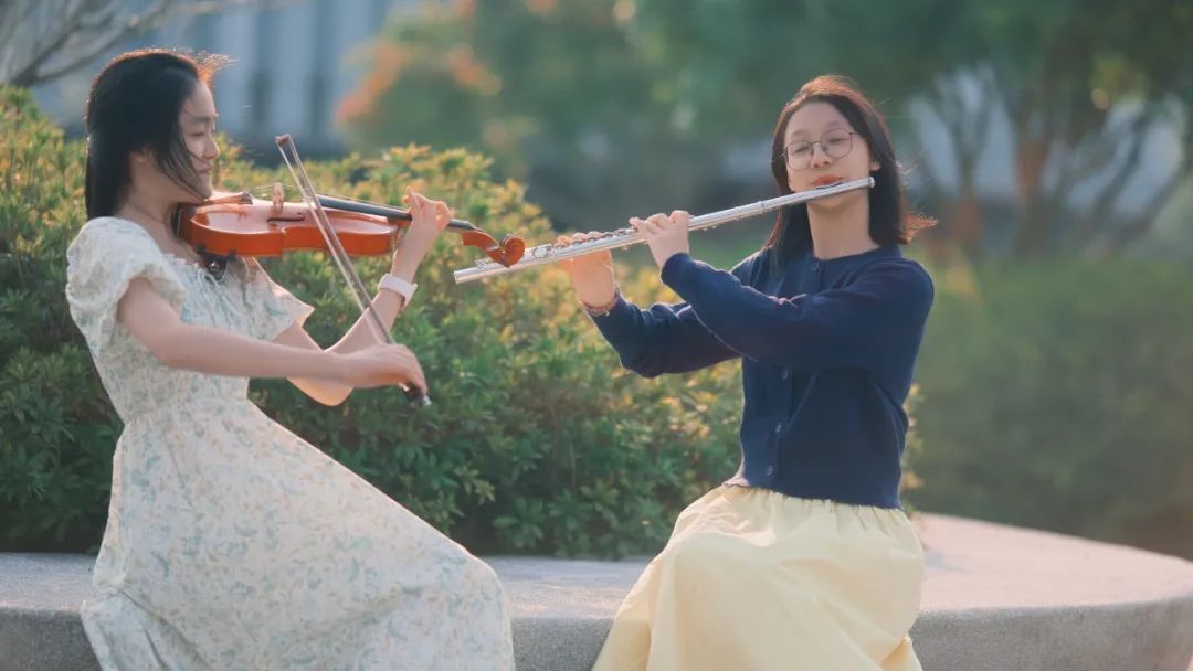 声乐教室里,她们的歌声清澈动人,仿佛春天的鸟儿在枝头欢唱,仿佛热闹的春光在教室里绽放。