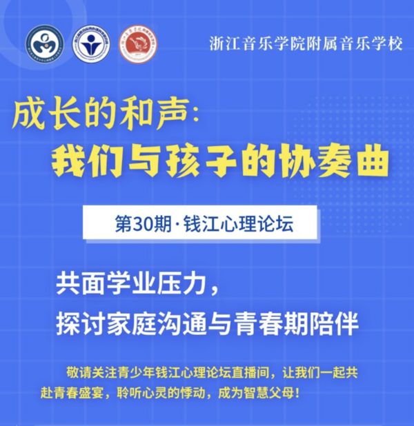 11月30日下午13:30,由浙江省儿童青少年心理健康工作委员会、浙江省联合应用心理科学研究院、浙音附中和浙江音乐学院心理健康与文化研究所联合举办的第30期钱江心理论坛暨附中“家长学校”首期活动,在浙音附中龙坞校区和韵厅温情启幕。