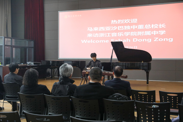 近日,马来西亚沙巴华文独立中学校长代表团一行到访浙音附中,开展文化与教育交流活动,为双方搭建艺术教育合作桥梁,共促两校教育文化互鉴共进。浙江音乐学院副院长董德君、国际交流合作处处长魏鹂,浙音附中党总支书记刘敏、副校长周展、副校长吴晓等班子成员出席活动。