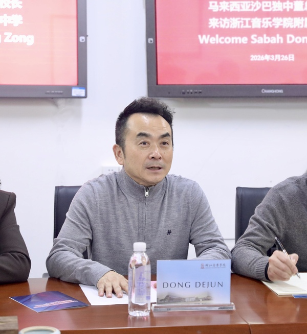 董德君对马来西亚沙巴华文独立中学校长团代表的到访表示热烈欢迎,简要介绍了浙江音乐学院的办学定位与国际交流情况,强调愿以此次交流为契机,发挥专业优势搭建合作平台,携手推动两校青少年艺术教育交流与中华文化传承。