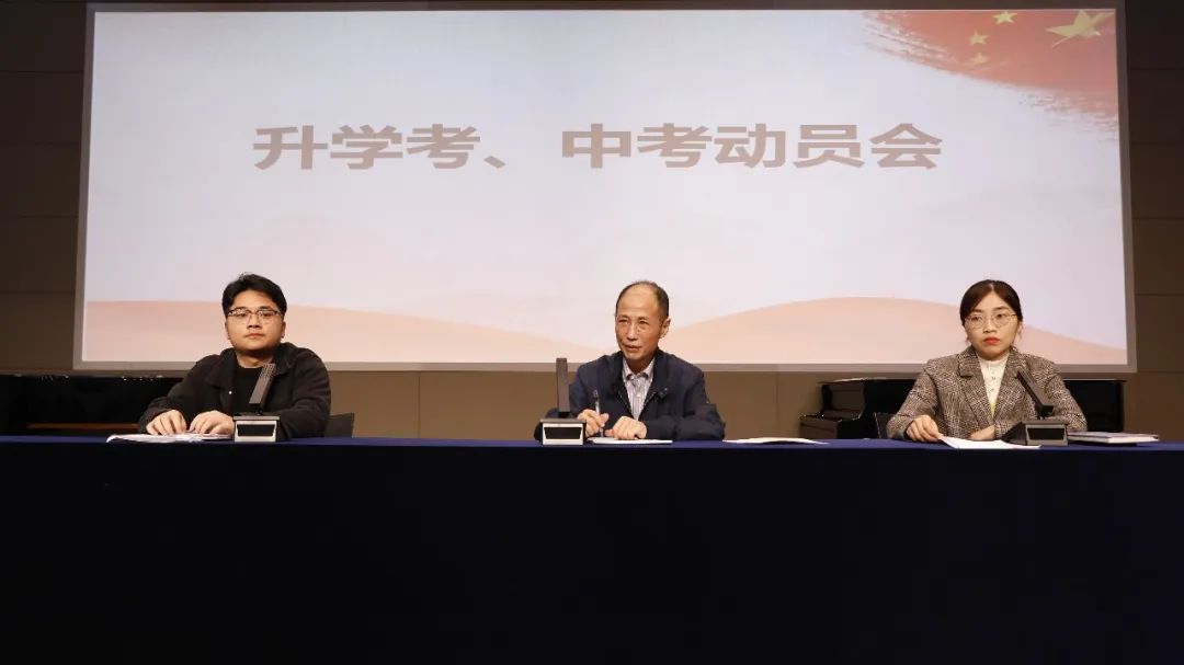 九年磨一剑,六月试锋芒。为了切实抓好初三年级中考教育教学工作,充分调动初三年级学生的学习积极性,增强学生迎战中考的信心和斗志,3月21日下午我校初三年级升学考、中考动员大会如期举行。校长童小明、初中学部长胡晓及初三全体师生参加会议。