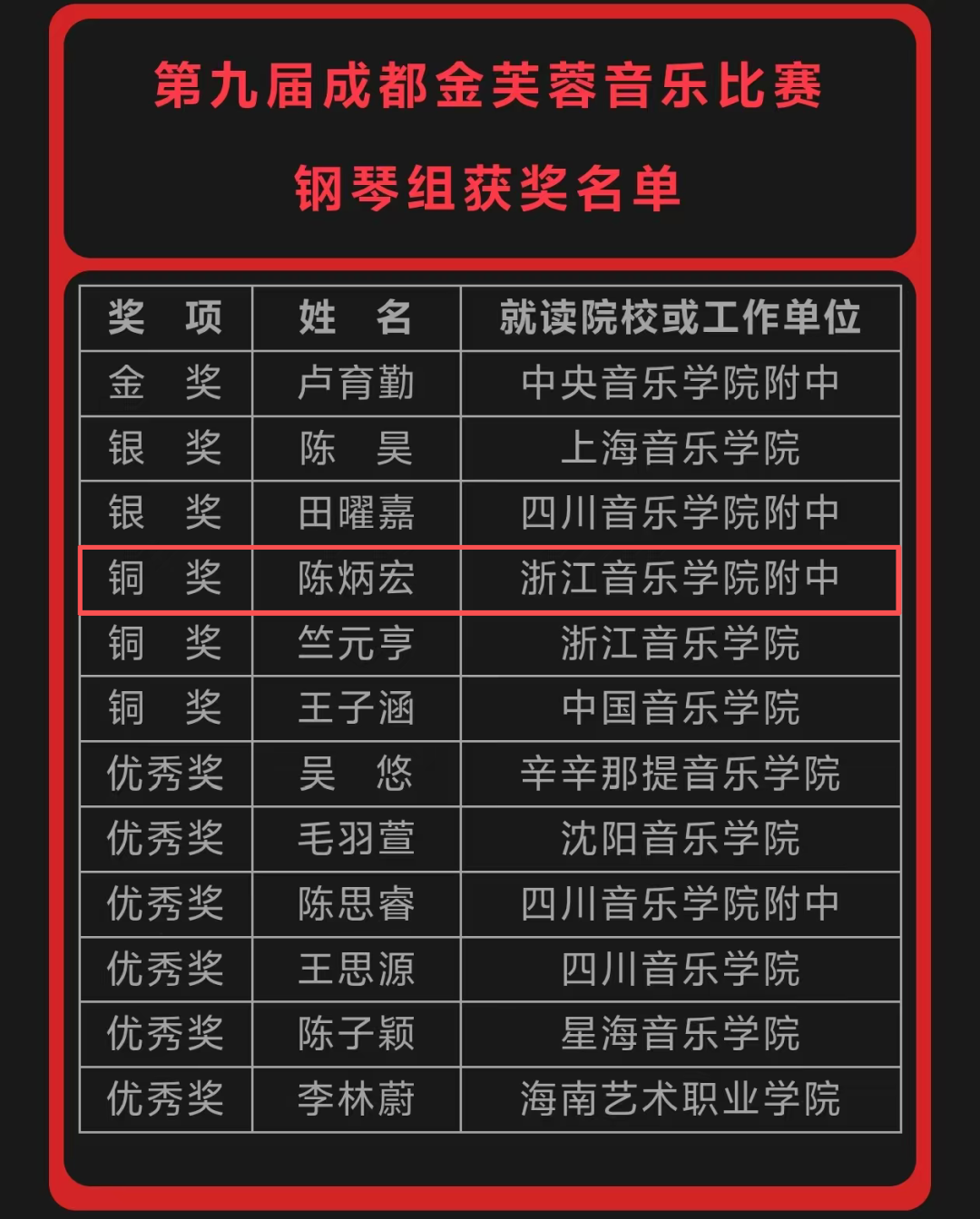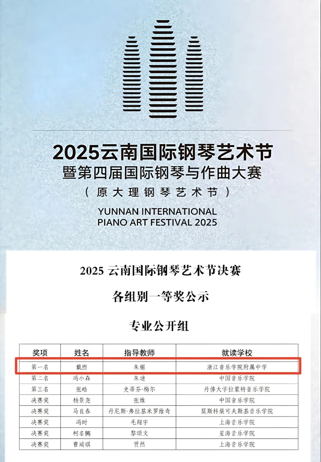 这些优异成绩充分展现了我校钢琴教学的卓越成果与学子的专业实力!特向获奖同学及指导教师团队表示热烈祝贺!
