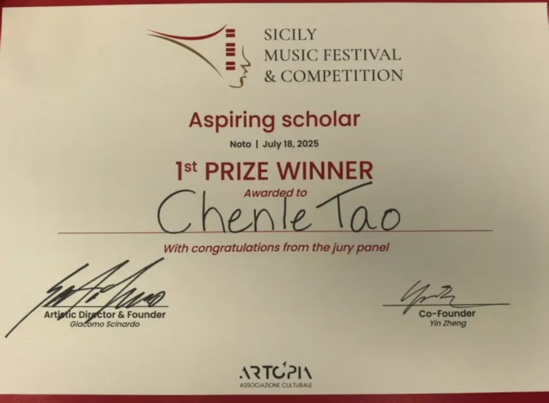 意大利西西里国际音乐节由意大利Artopia文化协会联合诺托市文参局和西西里文化部共同主办、Giacomo Scinardo教授担任艺术总监。自2018年创办以来,意大利西西里国际音乐节已成为世界级夏季音乐盛典,吸引了来自茱莉亚音乐学院、耶鲁大学音乐学院、英国皇家音乐学院等世界顶级音乐学府的优秀学子,以及利兹、克利夫兰、门德尔松、贝多芬等国际知名音乐比赛的获奖者参与。音乐节期间举办的大师班、音乐会和钢琴比赛等活动,不仅为青年艺术家提供了在全球舞台展示才华的珍贵机会,更通过与国际音乐大师的深度交流激发艺术创造力。