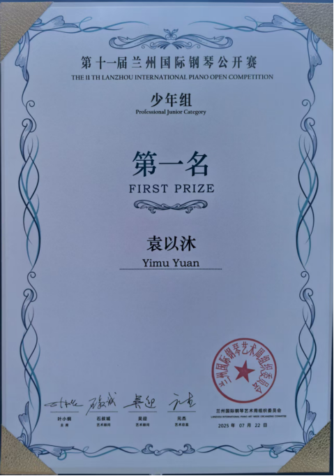 图丨袁以沐同学在兰州国际钢琴艺术周中的“德国音乐会”上再次获奖