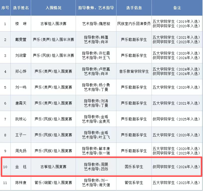 本届比赛同样见证了附中育人成果的持续绽放。附中毕业生、现国乐系学生金钰成功入围金钟奖复赛。