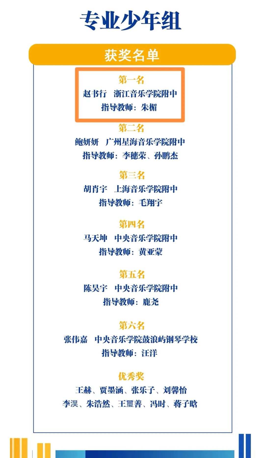 8月1日,2021厦门音乐季钢琴公开赛总决赛(2021.7.27—08.01)在美丽的“钢琴之岛”鼓浪屿圆满落幕。我校学生赵书行在本次比赛中荣获专业少年组第一名的好成绩,为学校增添光彩!祝贺赵书行同学和指导教师朱楣老师!