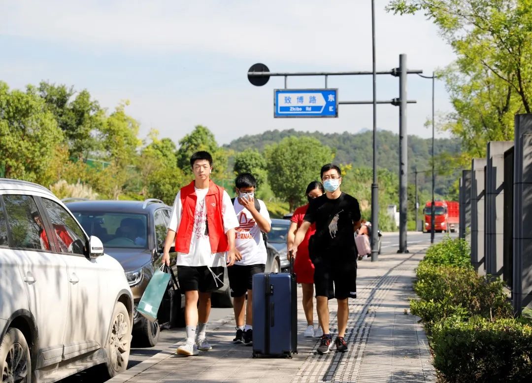 8月31日,浙音附中迎来了老生的开学报到。31日一大早,学生开学报到点各岗位的工作人员和志愿者全部就位,一切都准备就绪。八点左右,学生和家长陆续抵达学校。家长们按照学校要求规范停车,学生进校前先测量体温,确认体温无异常后由专门的工作人员对学生行李进行消毒,随后有志愿者们协助学生搬运行李。