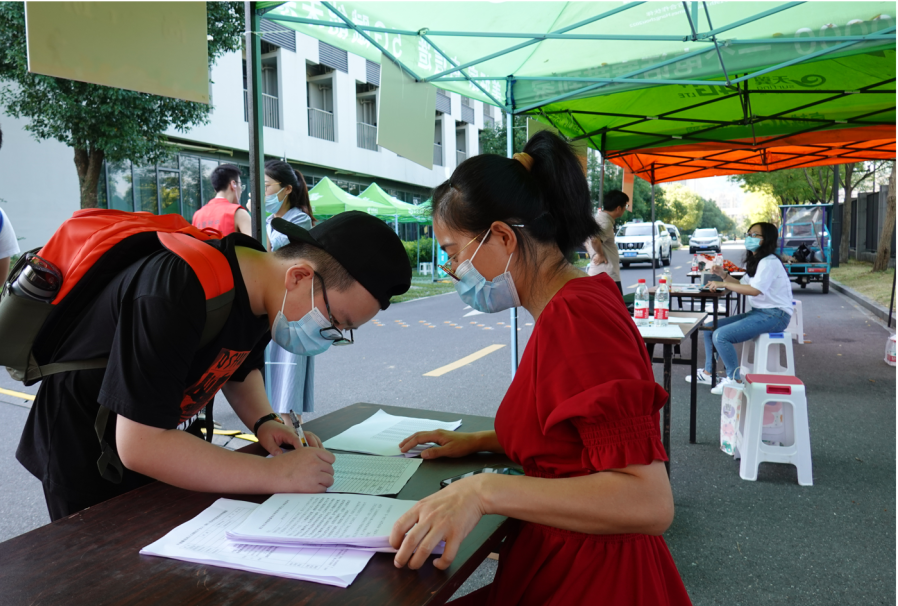 在疫情和烈日的“烤”验下,各部门各岗位的工作人员和志愿者们尽职尽责、服务周到,让前来报到的学生和家长感受到了亲切和温暖。