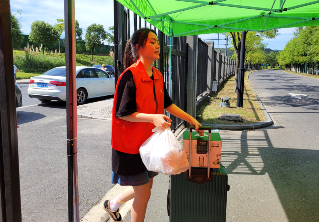 去年我是被服务的同学,今年我就成了为同学们服务的志愿者。角色的转换让我获得了很多不同的新体验,认识了新的同学,我还是挺开心的。最大的感受就是学校的防疫工作真的很到位,搬运行李的时候消毒水的味道会带给我们很大的安全感。