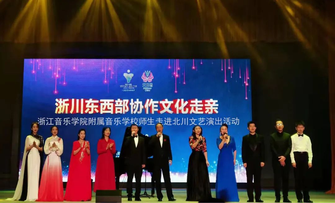 近日,我校牵头,借师生在成都参赛、观摩第十三届全国“金钟奖”之际,应绵阳市政府及对口支援局的邀请,赴平武县、北川县,举办了两场高水准的“文化走亲”文艺演出。两场演出通过我校副校长、古琴古筝二级演员章怡雯,学校总督学、声乐教授、国家一级演员杨孜孜,古筝教师范赛赛,声乐教师温凯雯和左靓,钢琴教师缪东君、艺术指导陆畅,钢琴专业优秀学生赵书行,以及浙江音乐学院教师方远和学生董静怡、阮妍沁等师生的共同演绎,为平武和北川两县的民众送去了两场视听盛宴。《唱支山歌给党听》、《祖国慈祥的母亲》、《海恋》、《秋夜筝》、《沁园春·雪》等节目在演出现场轮番上演,让当地观众领略到了别具一格的观赏体验。