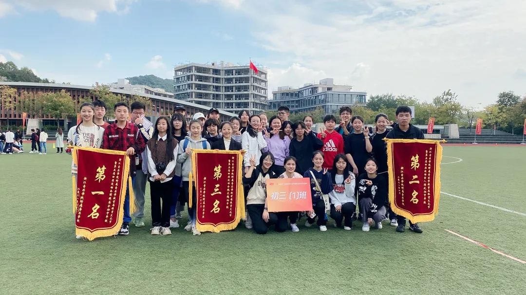 10月24日上午,我校首届体育文化节暨第五届田径运动会闭幕式在运动场隆重举行。高二(1)班获高中组团体总分冠军,高二(4)班获得亚军,高一(2)班获得季军;初三(1)班获得初中组团体总分冠军,初二(1)班获得亚军,初二(3)班获得季军,由校领导为获奖代表队颁奖并合影。