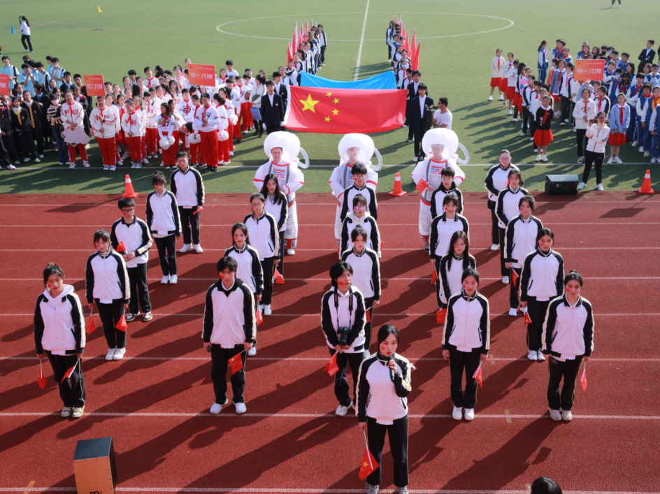 结合当下时事热点,各班级代表团方阵充分发挥出自身专业特长,精心准备了独具特色的入场式表演。同学们通过活力四射的歌舞表演和余音不绝的器乐演奏,用创意与灵感,以跑道为舞台,展现出爱校之情与爱国情怀,呈现了一场融合音乐艺术与体育精神的视听盛宴,展示出我校学生能文能武,全面发展的综合素质。