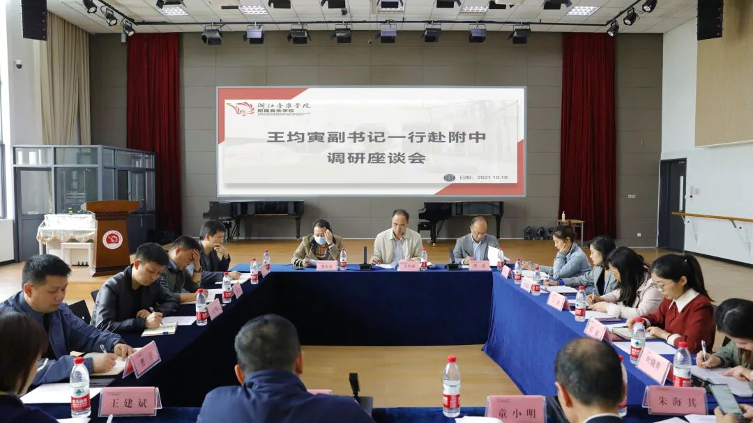 听取刘敏书记和童小明校长的汇报后,学院党委副书记王均寅对我校取得的办学成果表示充分肯定。他表示,学校办学思路清晰,定位明确,班子成员有凝聚力、战斗力,勇于担当。附中是浙音的后备军和子弟兵,要充分发挥人才储备的“蓄水池”作用。