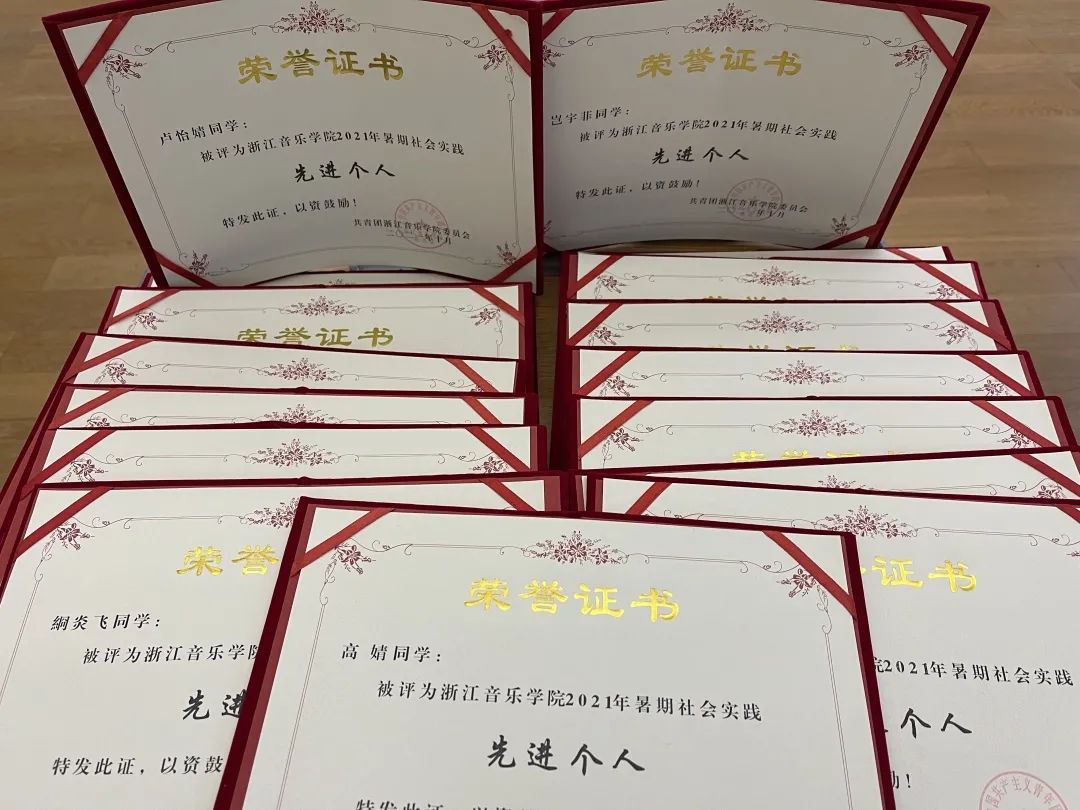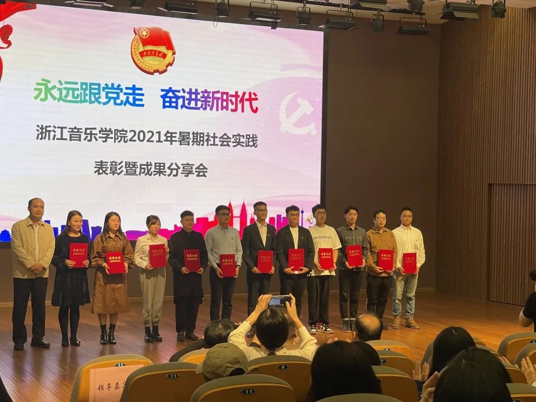 10月13日,附中暑期社会实践团凭借亮眼成绩单,在浙江音乐学院“永远跟党走,奋进新时代”2021年暑期社会实践表彰暨成果分享会上获得先进团队荣誉称号。同时,我校左靓、韩慧慧老师获得优秀指导教师奖;22名学生获得先进个人奖。