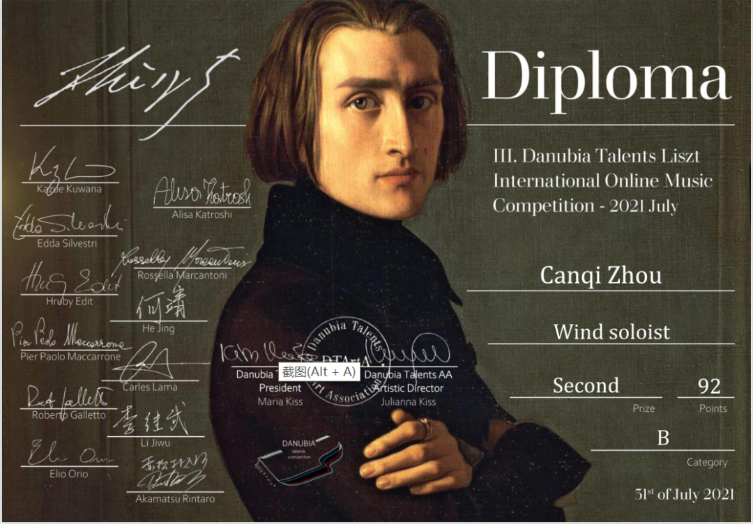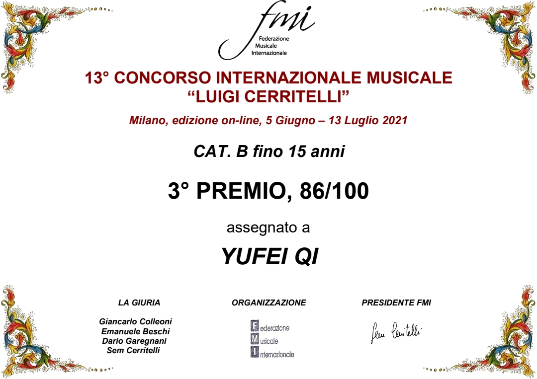 第13届意大利国际音乐比赛举办已长达27年,本次比赛分为5个部分。吸引了世界各国众多音乐演奏爱好者前来报名参赛,规格之高,竞争激烈。