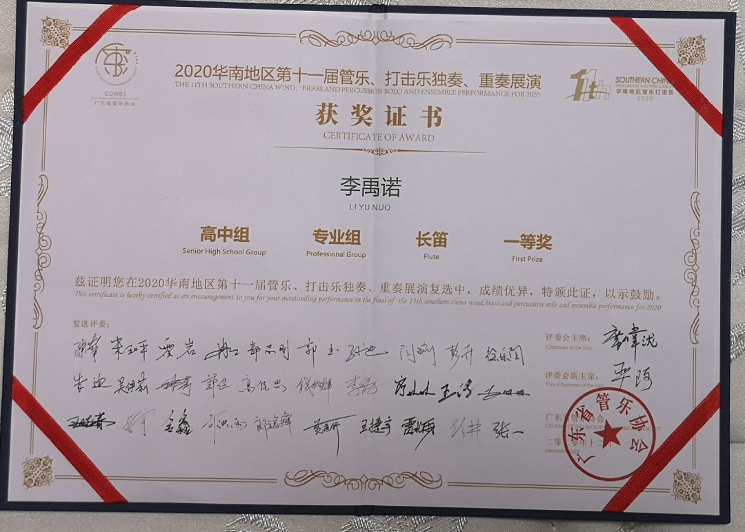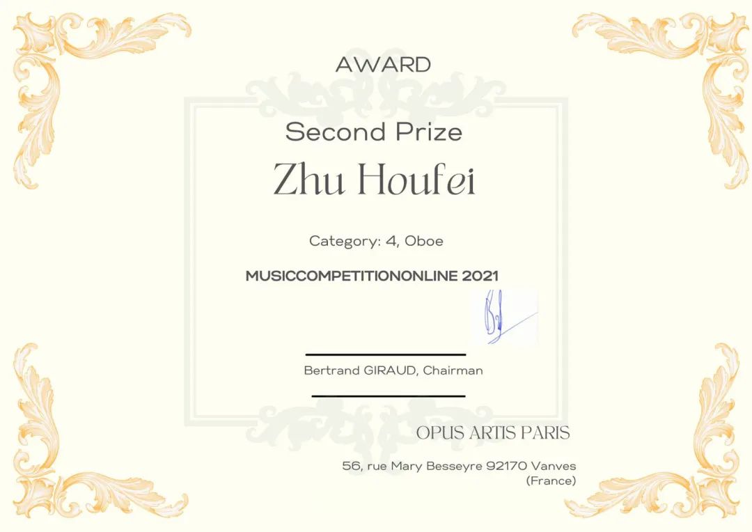 双簧管独奏组别Ⅳ 二等奖:朱侯妃