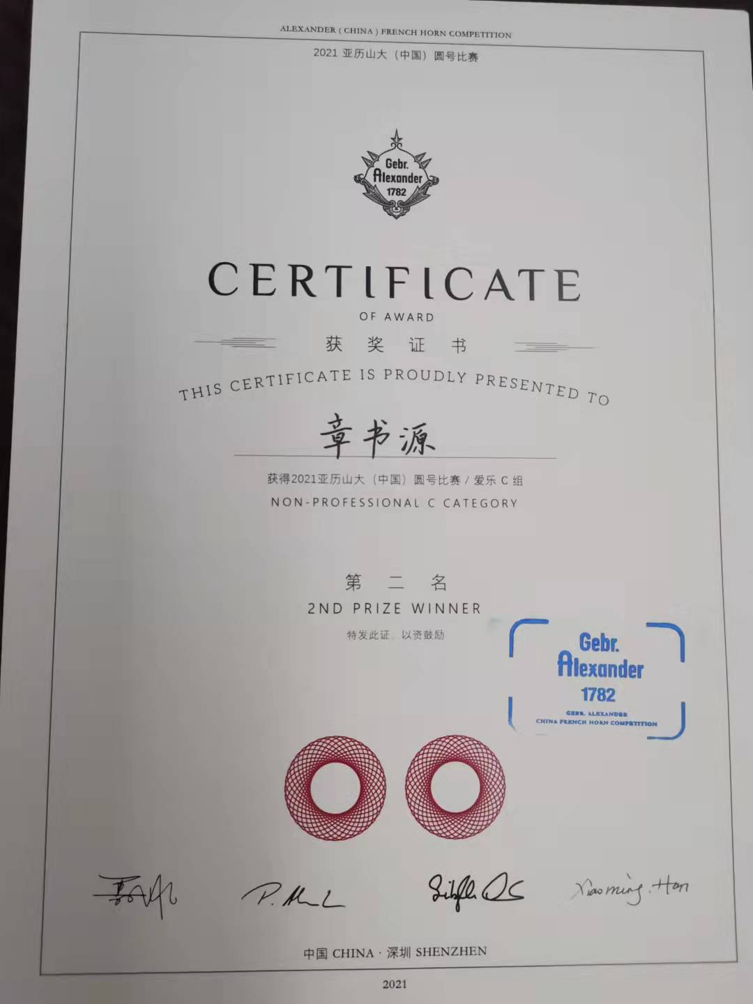 2021亚历山大(中国)圆号比赛由德国亚历山大公司在华合作公司——北京柏利通雅文化有限公司、亚历山大乐器制造公司主办,深圳交响乐团、深圳市宝安区爱乐交响乐团、中国圆号重奏团、深圳猎人圆号重奏团承办,全国高校圆号教学联盟协办。