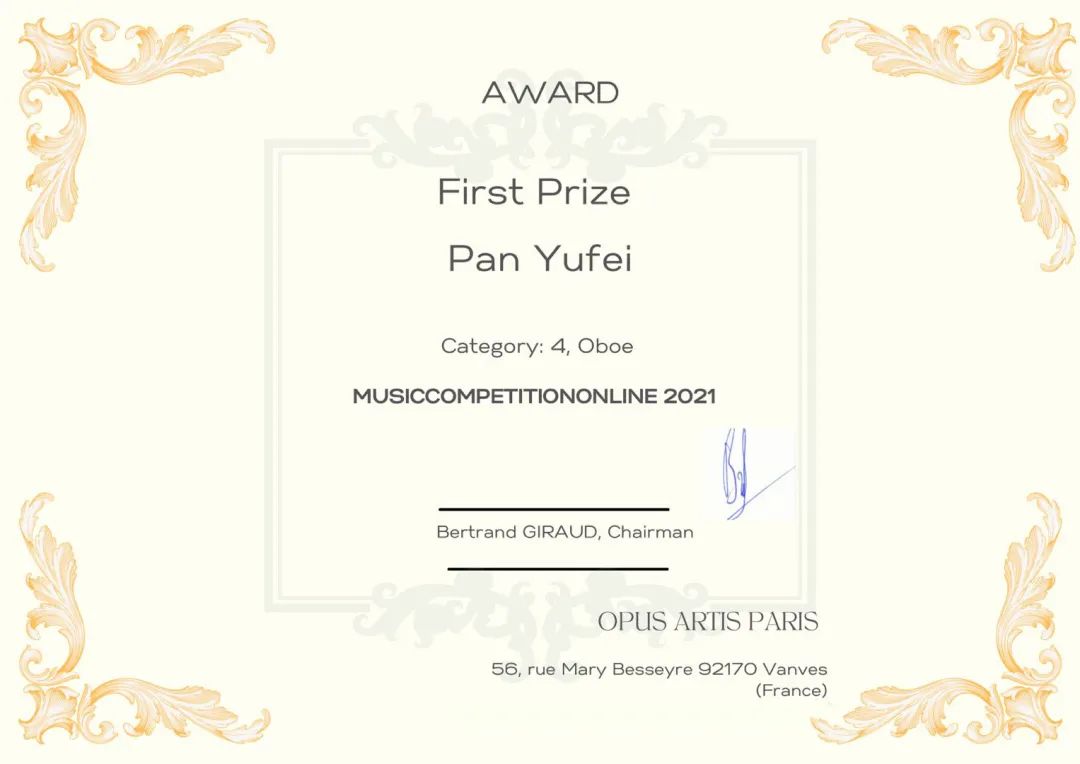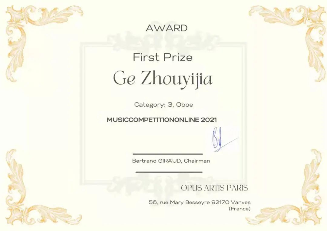 双簧管独奏组别Ⅲ 一等奖:葛周一嘉