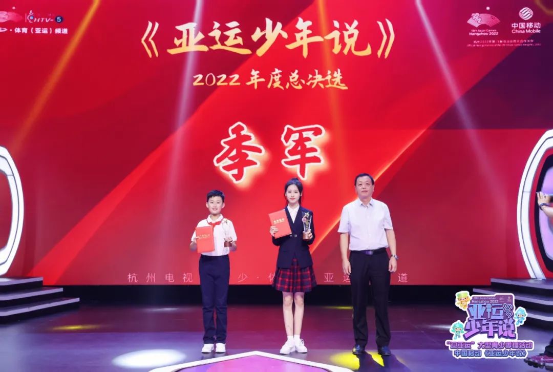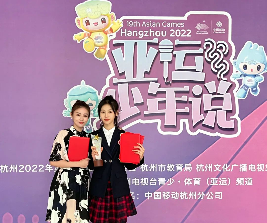 管桐立同学说,非常荣幸能获得《亚运少年说》中学组的金奖、季军,非常感谢主办方为参赛选手提供展示的平台,也感谢学校给予我锻炼的机会,让我充分发挥自身专业优势,获得佳绩。同时,感谢学校领导和指导老师胡君婷对我的帮助,在比赛期间指导我修改演讲稿,调整我的演讲节奏,让我呈现最好的状态。最后,也要感谢我的父母,一直在背后鼓励我、支持我。于我而言,通过这次比赛不仅锻炼了自己的能力,更重要的是,我让更多的人听到了来自少年的亚运声音,为杭州亚运助力加油。开学在即,也祝愿所有同学都能够成就更好的自己!