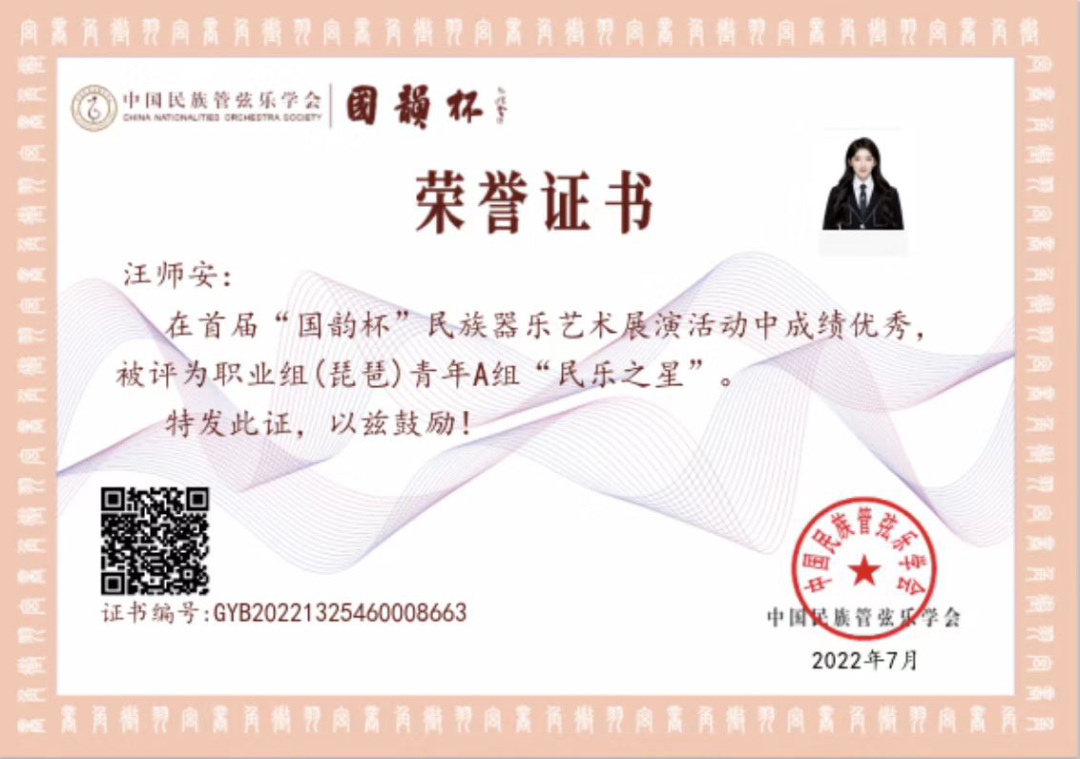 首届“国韵杯”民族器乐艺术展演活动由中国民族管弦乐学会主办,通过线上的方式递交作品报名。旨在弘扬民族文化、坚定民族自信、提升国民素养、丰富群众文化生活。本次展演将组织民乐艺术家对参与活动的演奏者给予专业性指导,为优秀作品和优秀演奏者提供展示平台,激发广大习乐者学习民乐的热情,鼓励培养民乐新人、传承赓续中华精神。
