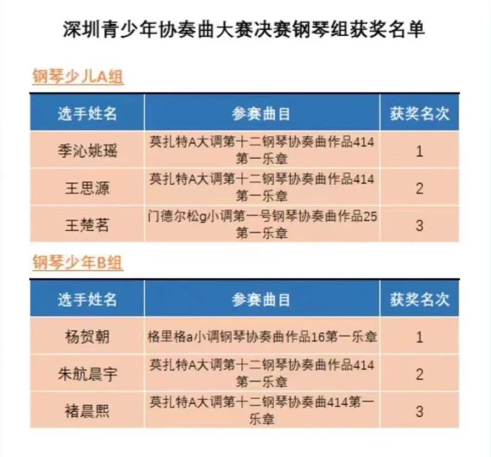 在刚刚结束的2022深圳青少年协奏曲大赛决赛圈的比赛中,我校朱航晨宇同学荣获钢琴少年b组第二名,向朱航晨宇同学及指导老师吴晓副教授表示热烈祝贺!