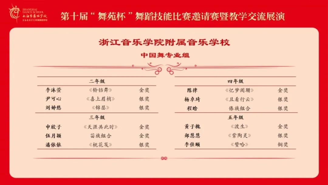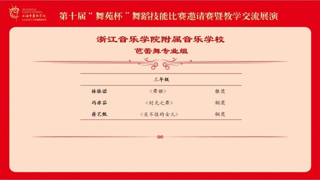 我校在接到比赛邀请后,高度重视参赛准备工作。在校领导的大力支持和附中舞蹈教研组的精心组织下,学校先后开展初赛和复赛,选拔参赛人选。我校舞蹈专业学生以最饱满的热情,积极备战。经过学校层层选拔,最终产生去上海参加本次“舞苑杯”决赛的学生名单。功夫不负有心人,我校参赛学生在本届比赛中斩获诸多奖项,喜获佳绩。值得一提的是,我校初二芭蕾舞专业的三名同学与同类学校初三学生同台竞技,最终取得好成绩。在此,向获奖的同学们和指导老师们表示热烈祝贺!