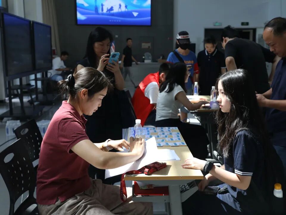 次日,我校高中部迎来新学期报到日。高一新生在家长的陪伴下陆续来到附中楼大厅,在班主任的指引下完成报名登记手续,领取一卡通和校云卡。