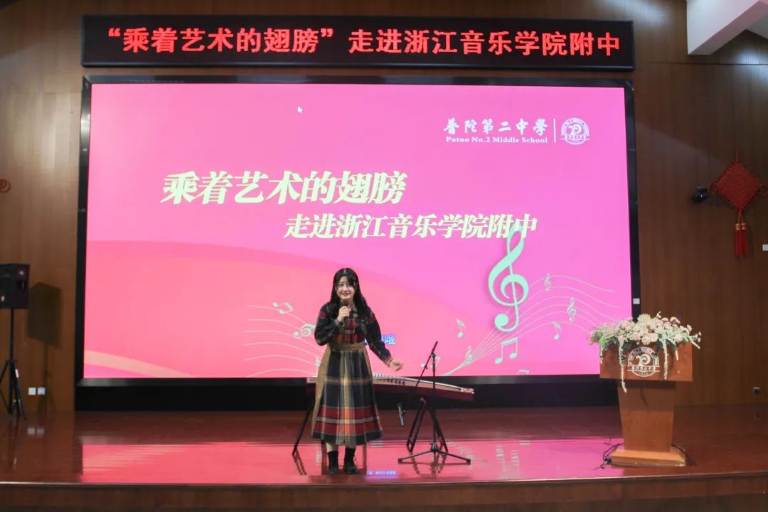高三民歌专业学生吴彦蓉和高二古筝专业学生金钰做了示范演奏,附中两位学生的精彩表演,给老师们留下深刻的印象,也进一步加深了对浙音附中专业化艺术人才培养的了解。