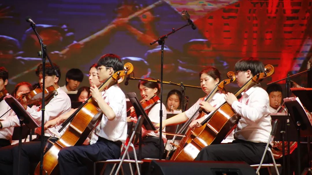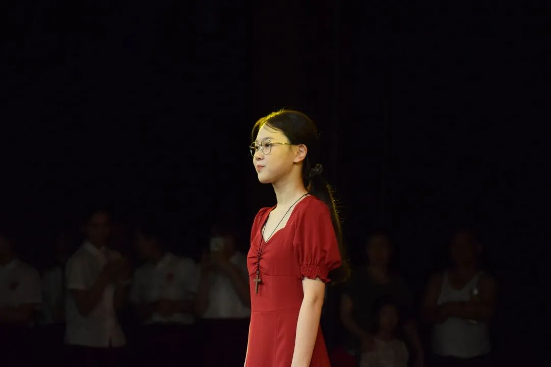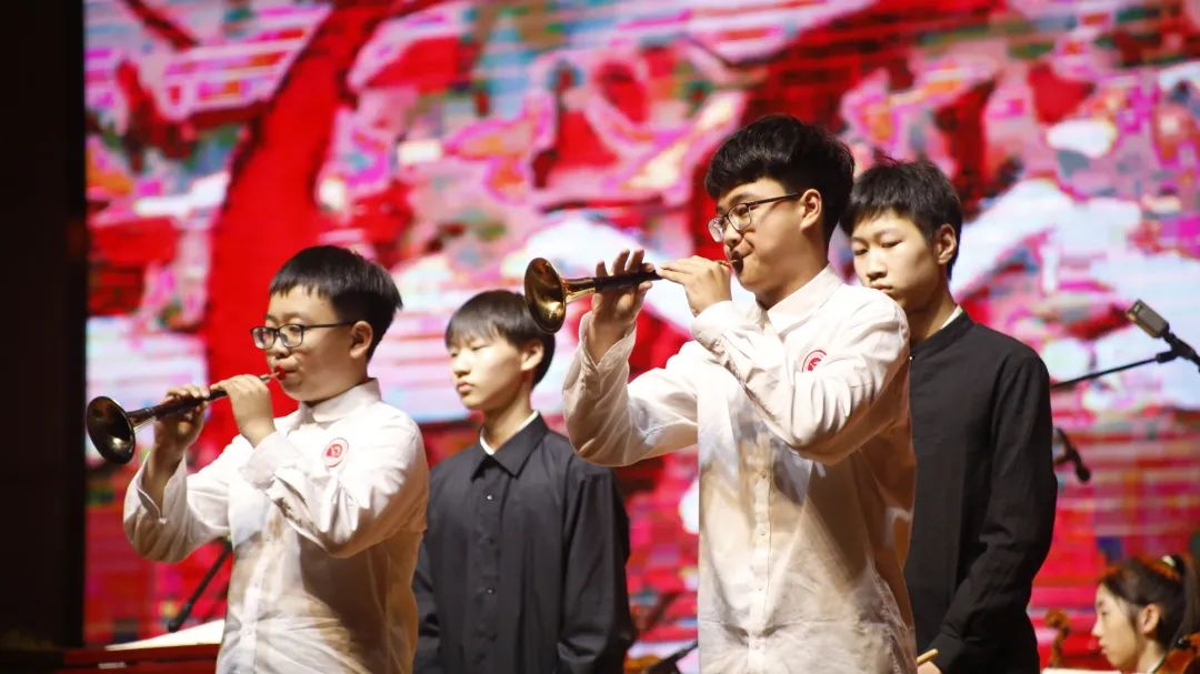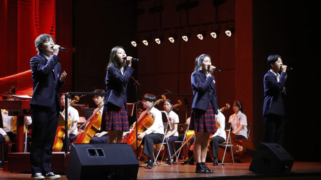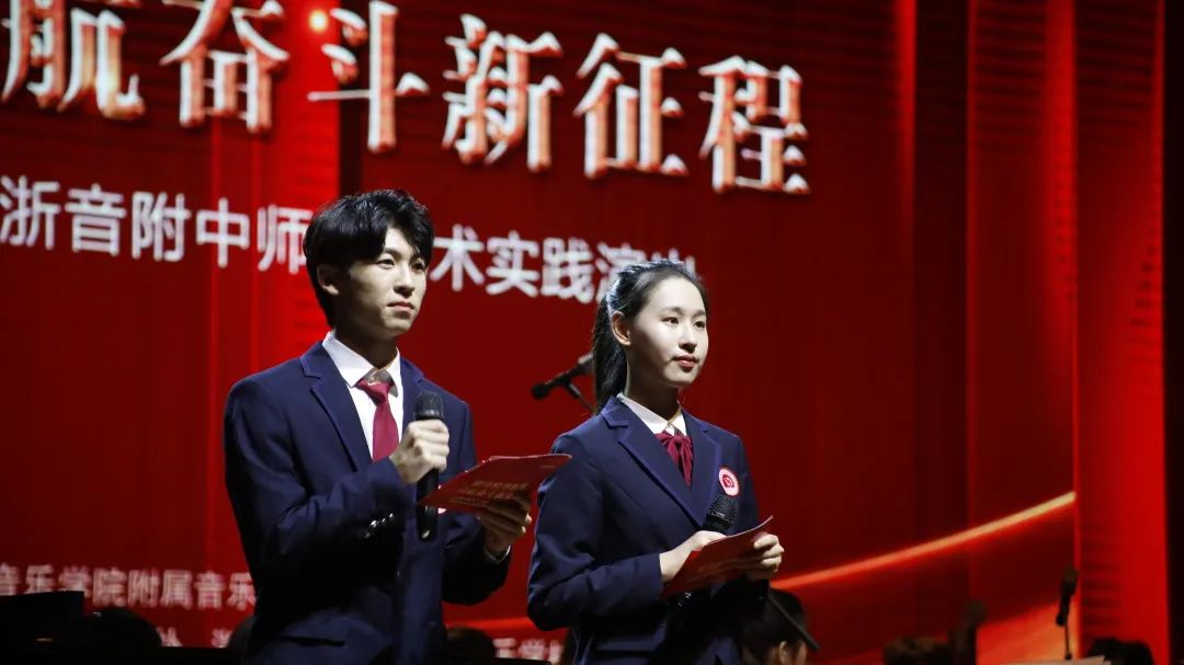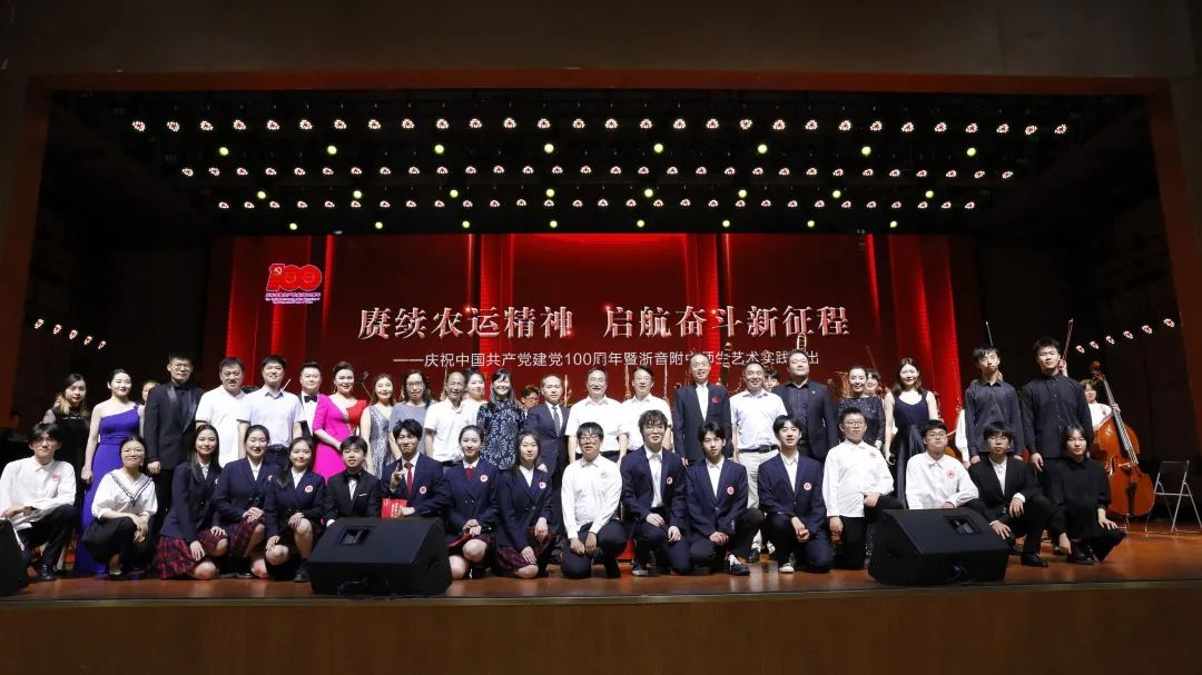 浙音附中学子在舞台上尽情展现风采,一曲曲红歌高亢激昂,聚焦百年征程、承载民族初心,带领我们乘着历史的红船,穿越百年航程,共同感悟中国共产党的思想伟力和时代品格。