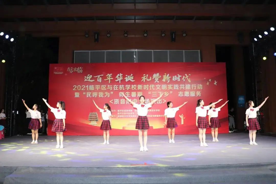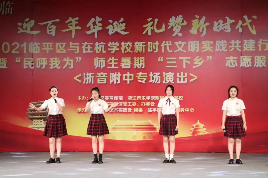 “庆百年华诞 礼赞新时代”——浙音附中庆祝建党100周年暨2021年暑期师生艺术实践演出活动正式进入计划第二站,走进衙前镇、临平街道。本次暑期艺术实践由专业老师带队,师生同台向党的生日献礼,向关心附中的各级领导和社会各界汇报学习成果,展现浙江文化强省的别样风采。