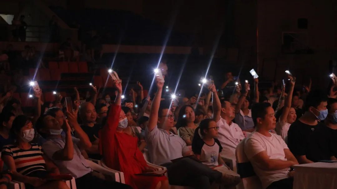 演出尾声,全场齐唱《没有共产党就没有新中国》,不时到来的阵雨也没有驱散现场观众们的热情,大家齐声唱出了对党的敬爱与追随党的坚定信念。