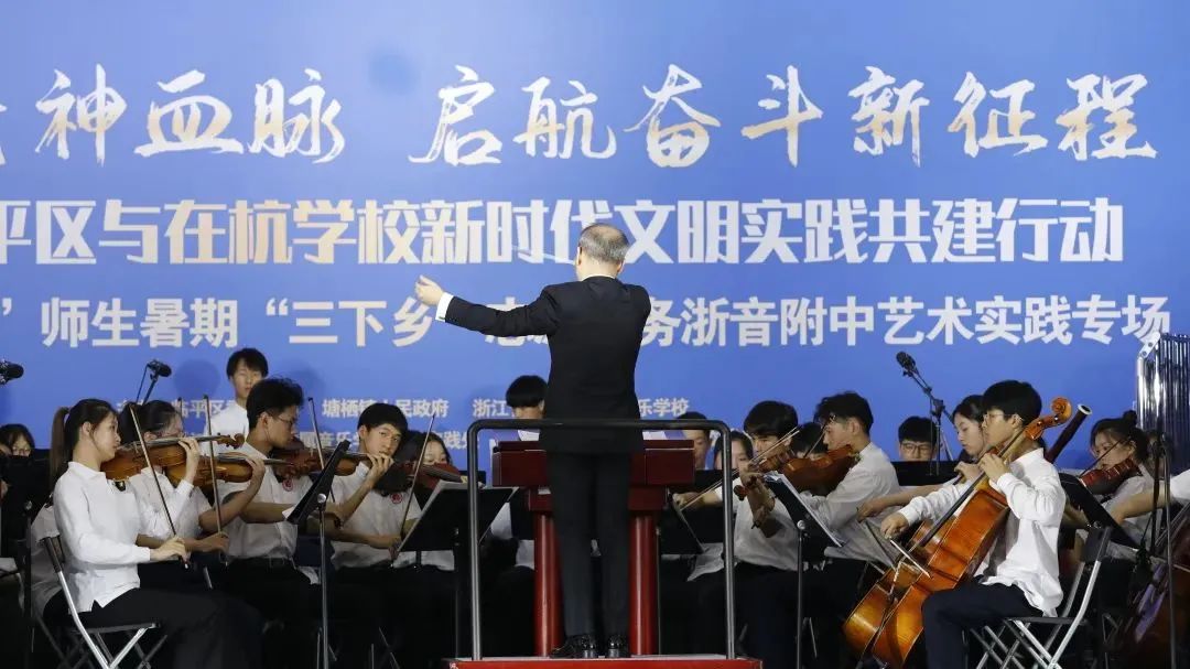 参与本次主题实践活动是浙音附属音乐学校以浙江音乐学院青少年交响乐团、国乐团的方式,以学生为主,师生同台,参与师生200余人。演出节目有流行、声乐、舞蹈等多种形式,如衢州新宅村文化员如此评价:“最好的地方在于演出节目中很多都是中国传统民乐,非常接地气,歌曲也是老百姓喜闻乐见的类型,比较能够引起当地村民的共鸣。”我们传唱经典、歌颂伟大祖国,全程九场演出大家都在齐唱“没有共产党就没有新中国”的歌声中久久不能离开。这不只是浙音附属音乐学校的艺术实践教学,更是全体师生一堂生动深刻的爱国主义教育课。