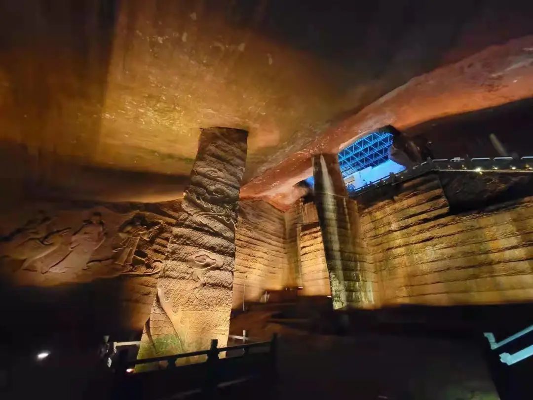 龙游石窟规模宏大,气势磅礴。走进石窟,一扫室外的炎热暑气,洞壁上的凿痕排列整齐,粗大的石柱支撑着穹顶,置身于巨大的空间中,顿感人类的渺小,悠远的时间仿佛在洞窟内被定格成瞬间。作为我国古代最高水平的地下人工建筑群之一,龙游石窟也是世界地下空间开发利用的一大奇观。它是中华民族博大精深的体现,集人文、艺术、文化、工程技术于一体。龙游石窟之所以神秘,不仅因为建造的年代不明,石窟的形成原因和用途更是众说纷纭,难解的身世之谜让龙游石窟更增添了几分魅力。