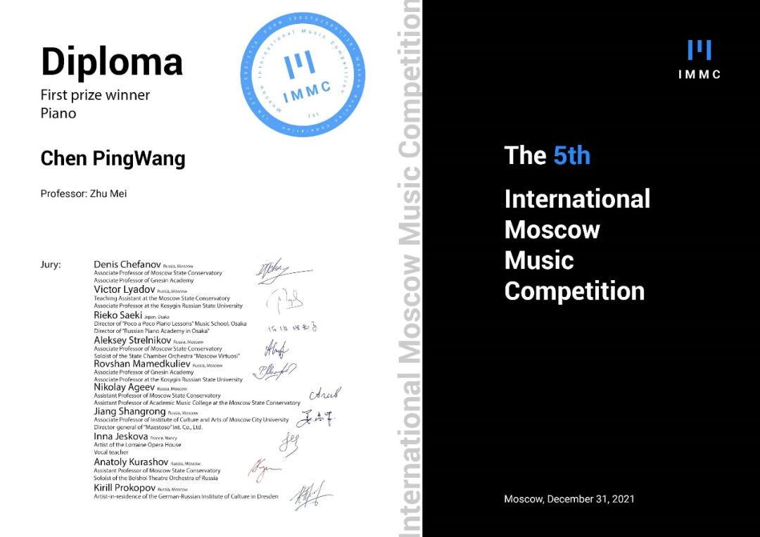 在刚刚落下帷幕的第五届莫斯科国际音乐大赛中,我校初二年级钢琴专业的陈炳宏同学获得钢琴独奏第三组一等奖。
