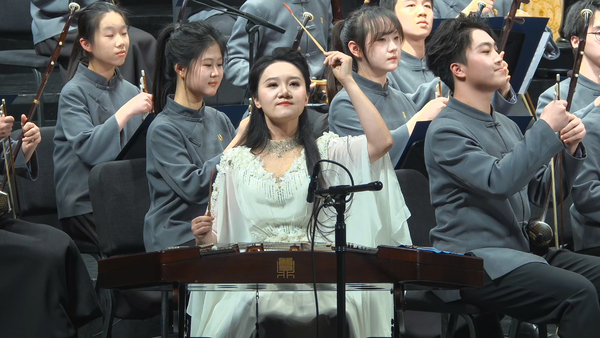 本场音乐会还带来了多部作品的全国首演——青年作曲家刘畅创作的扬琴协奏曲《欢歌》。这首新曲由附中青年教师黄煌精湛演绎。