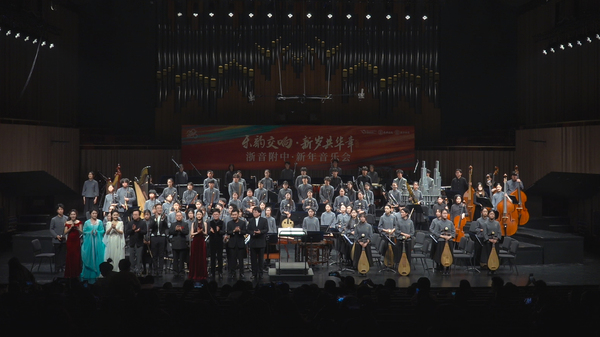 12月28日晚,浙江音乐学院附属音乐学校“乐韵交响,新年共华章”新年音乐会在浙音音乐厅启幕。本场音乐会汇聚了140名师生参与演出,浙江音乐学院附属音乐学校交响乐团和国乐团首次同台亮相,这两支乐团均为省内编制最完整、专业水准最高的青少年乐团。演出中,西方交响乐与中国民族管弦乐交相辉映,经典作品与当代原创作品同台演绎,充分展现了附中师生的艺术风采与专业水准。