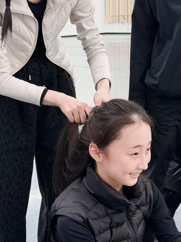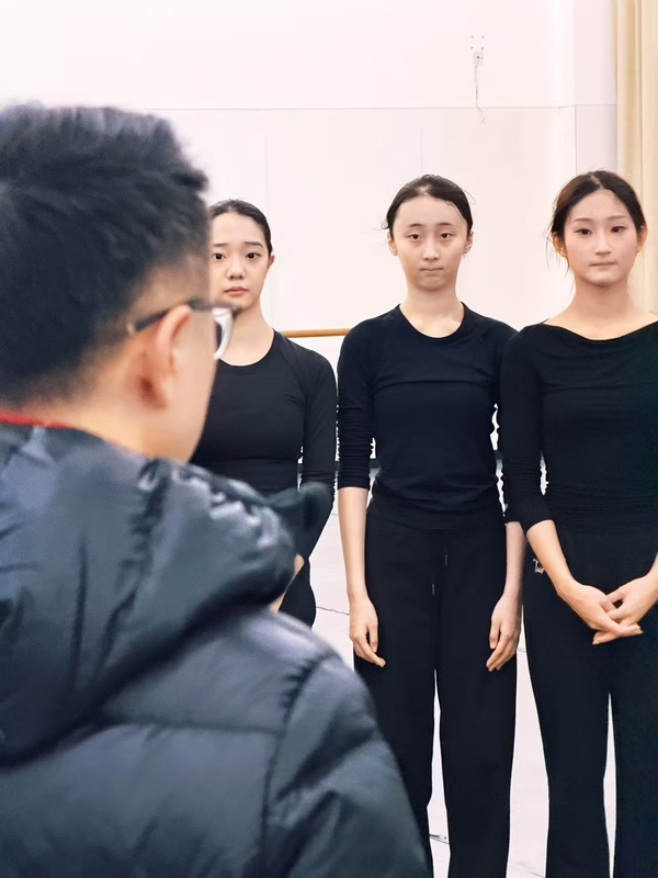 刘秭悠(高二1班 中国舞专业) 回忆起最初接到任务时的心情,依然记忆犹新:“激动,但也充满了挑战。”面对独特的舞蹈风格,她一度找不到动作的质感。但在四位编导老师的耐心指导和大学姐姐们的帮助下,她迅速调整状态。