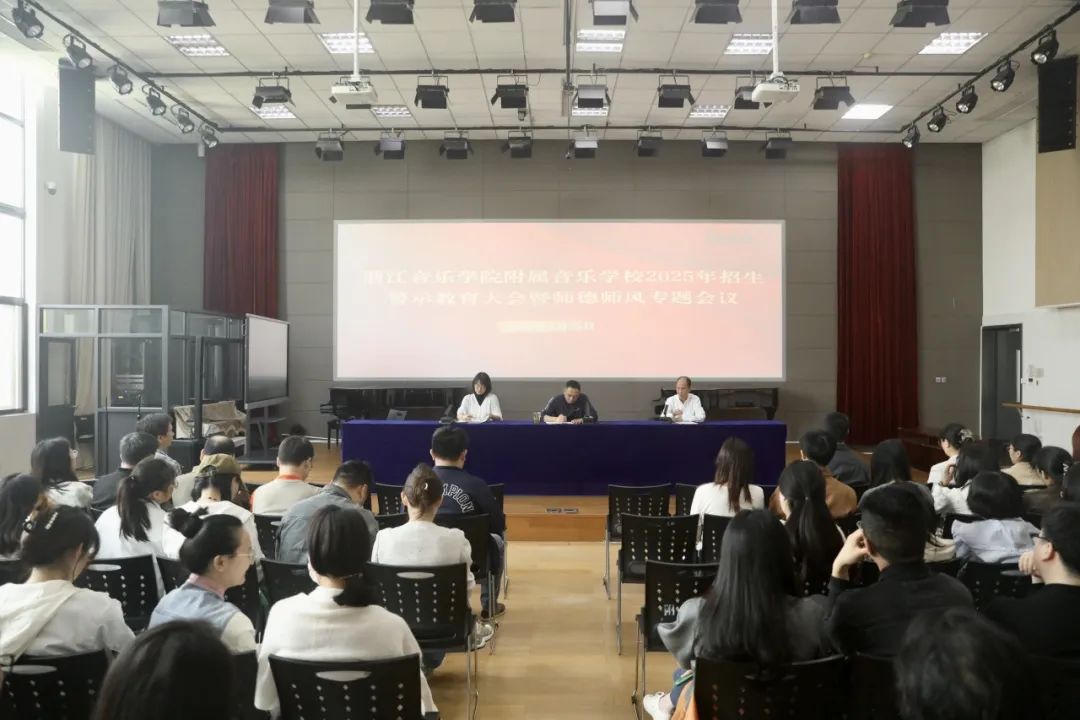 为进一步规范招生工作流程、严明工作纪律,教育引导教职工筑牢思想防线 ,严守师德底线,4月25日中午,我校召开 2025年招生警示教育大会暨师德师风专题会议。会议由学校党总支书记刘敏主持,全体教职工参加会议。