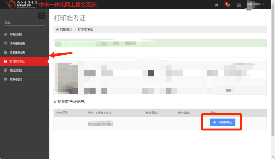 2.操作指引:登录电脑端报名系统(https://fzzs.zjcm.edu.cn/zbzs),菜单栏内选择“打印准考证”自行下载准考证打印。